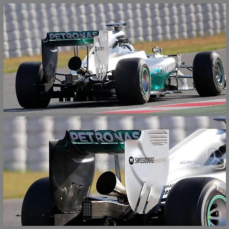 В среду утром на тестах в Барселоне «Мерседес» впервые опробовал выхлопную систему, модифицированную в целях улучшения звука двигателя V6.