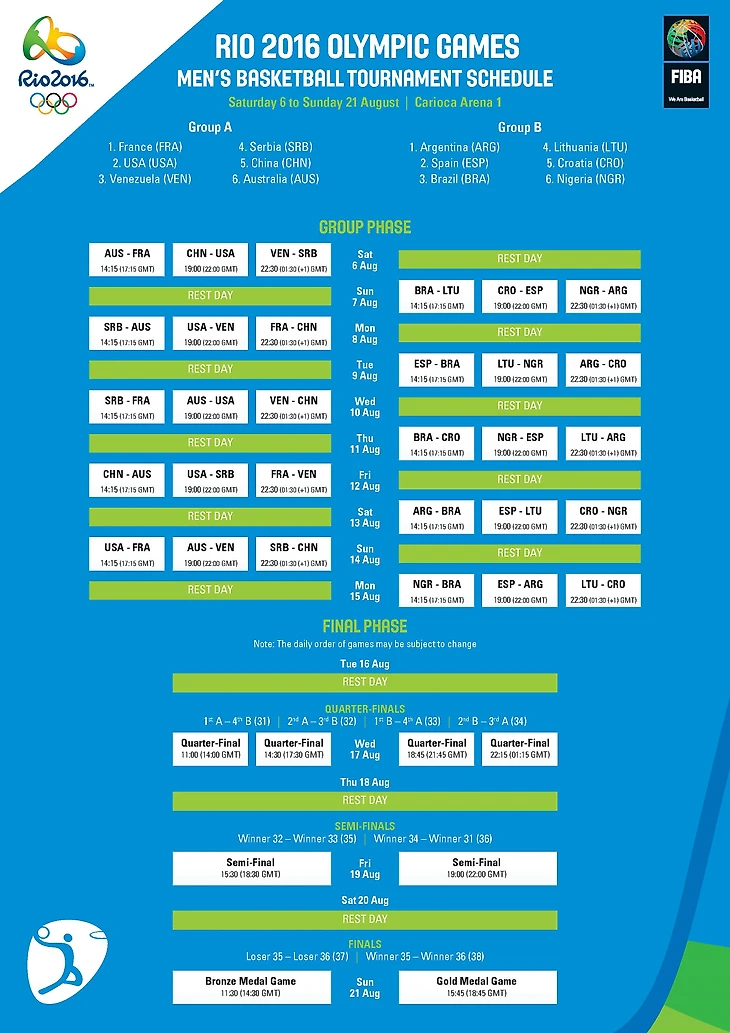 Определились составы групп и расписание матчей на Олимпийских играх 2016 года в Рио-де-Жанейро, сообщает официальный сайт ФИБА.