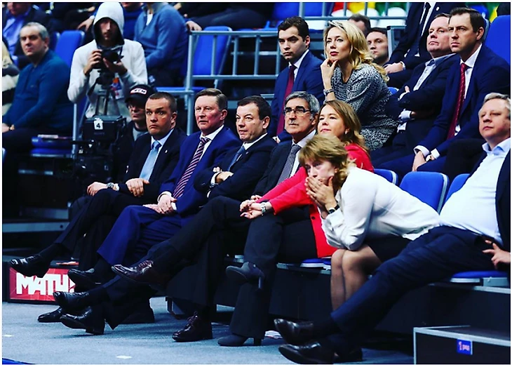 На матче между ЦСКА и «Фенербахче» президент лиги ВТБ Сергей Кущенко оказался на первом ряду вместе с президентом Евролиги Жорди Бертомеу.