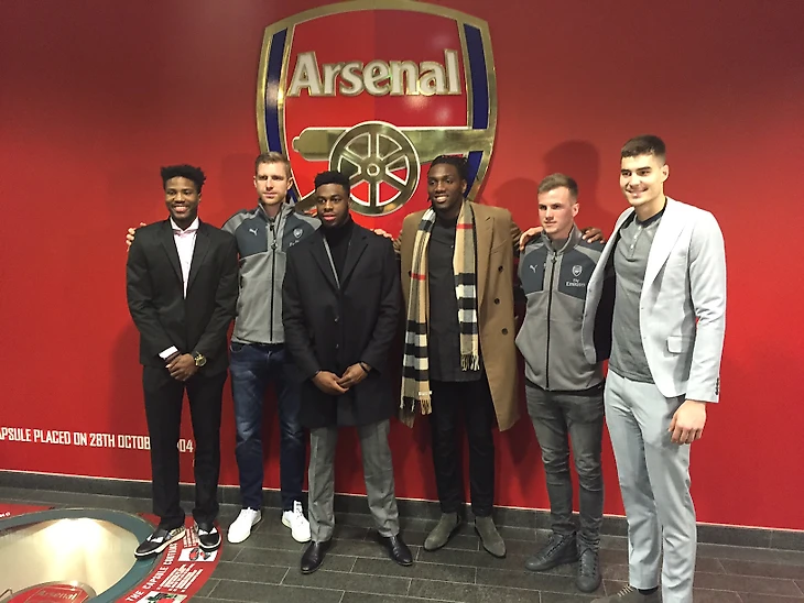 Игроки «Денвера» Эммануэль Мудиай, Кеннет Фарид, Хуан Эрнангомес и Малик Бизли встретились с футболистами лондонского клуба «Арсенал» Пером Мертесакером и Робом Холдингом.