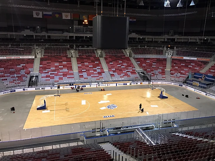 На этой неделе на сочинской арене «Большой», где пройдет первый в истории Матч всех Звезд Лиги ВТБ, впервые монтировался баскетбольный паркет. Делалось это для того, чтобы проверить в каком состоянии он находится и как паркет будет вести себя «на льду».