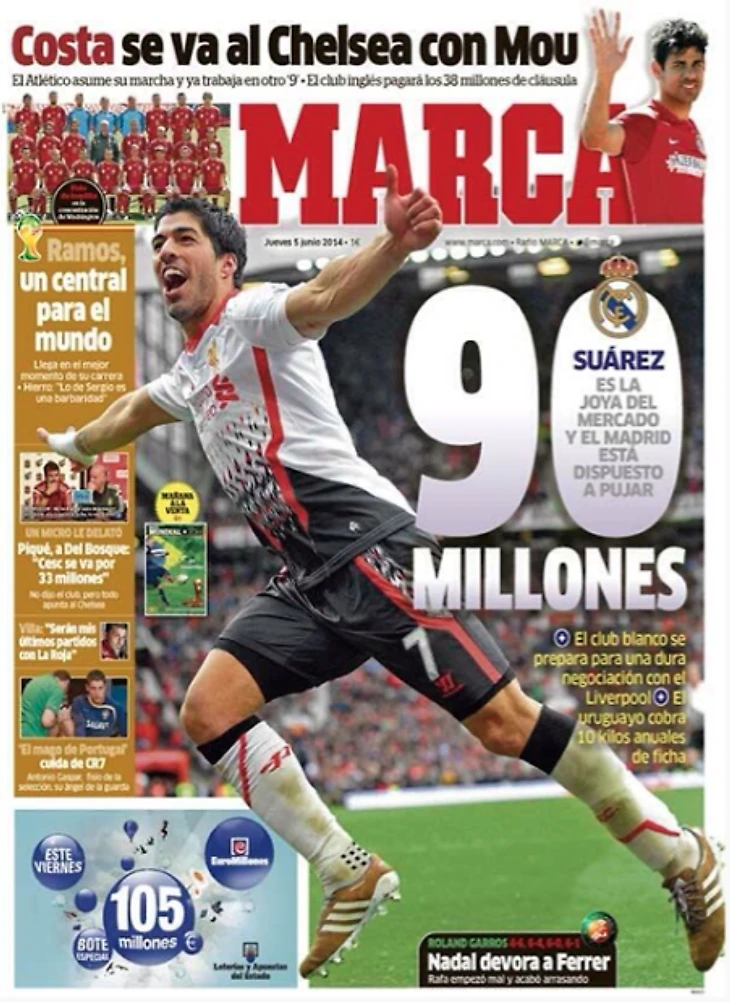 «Реал» готов заплатить за нападающего «Ливерпуля» Луиса Суареса 90 миллионов евро.