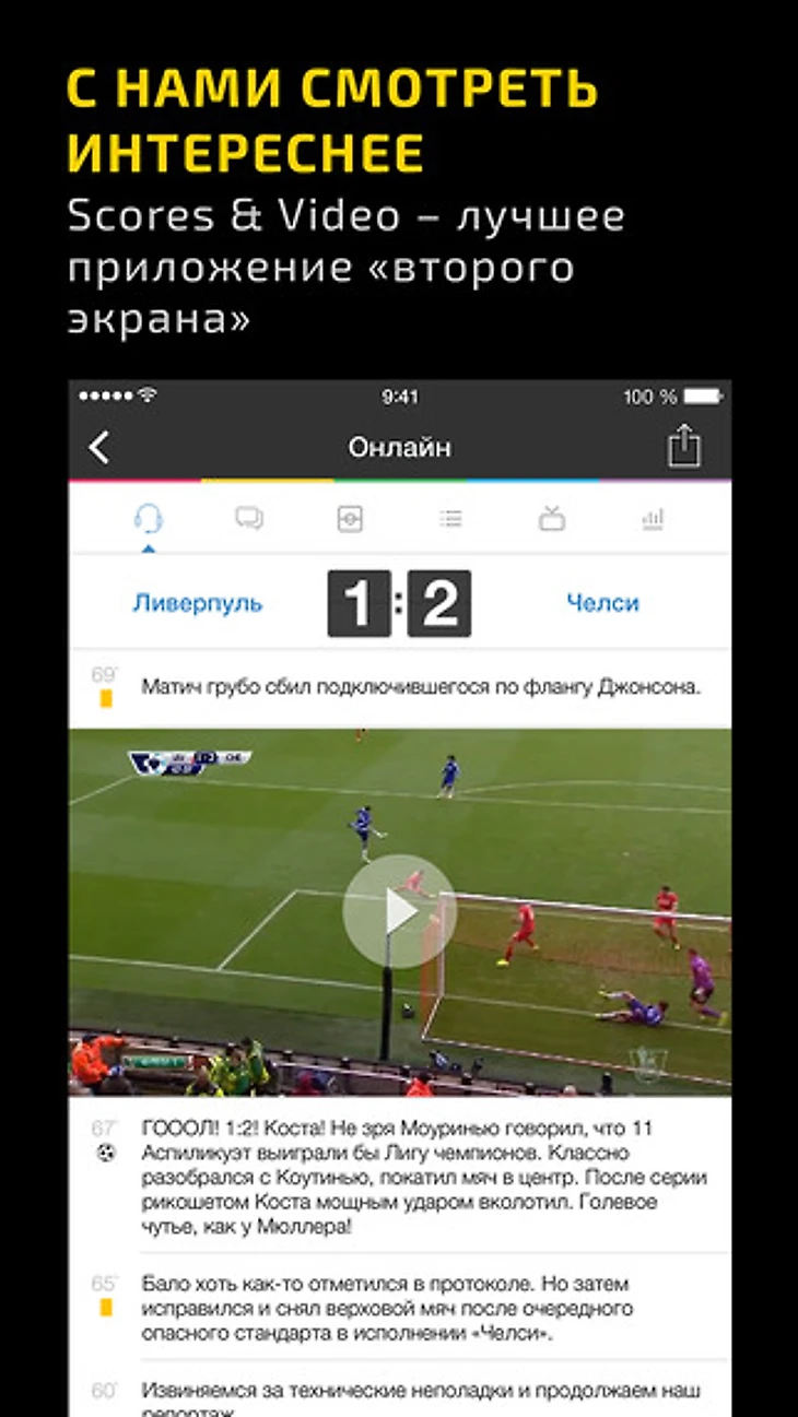 Обновилось самое популярное российское приложение «второго экрана» Scores & Video; добавилась версия для iPad
