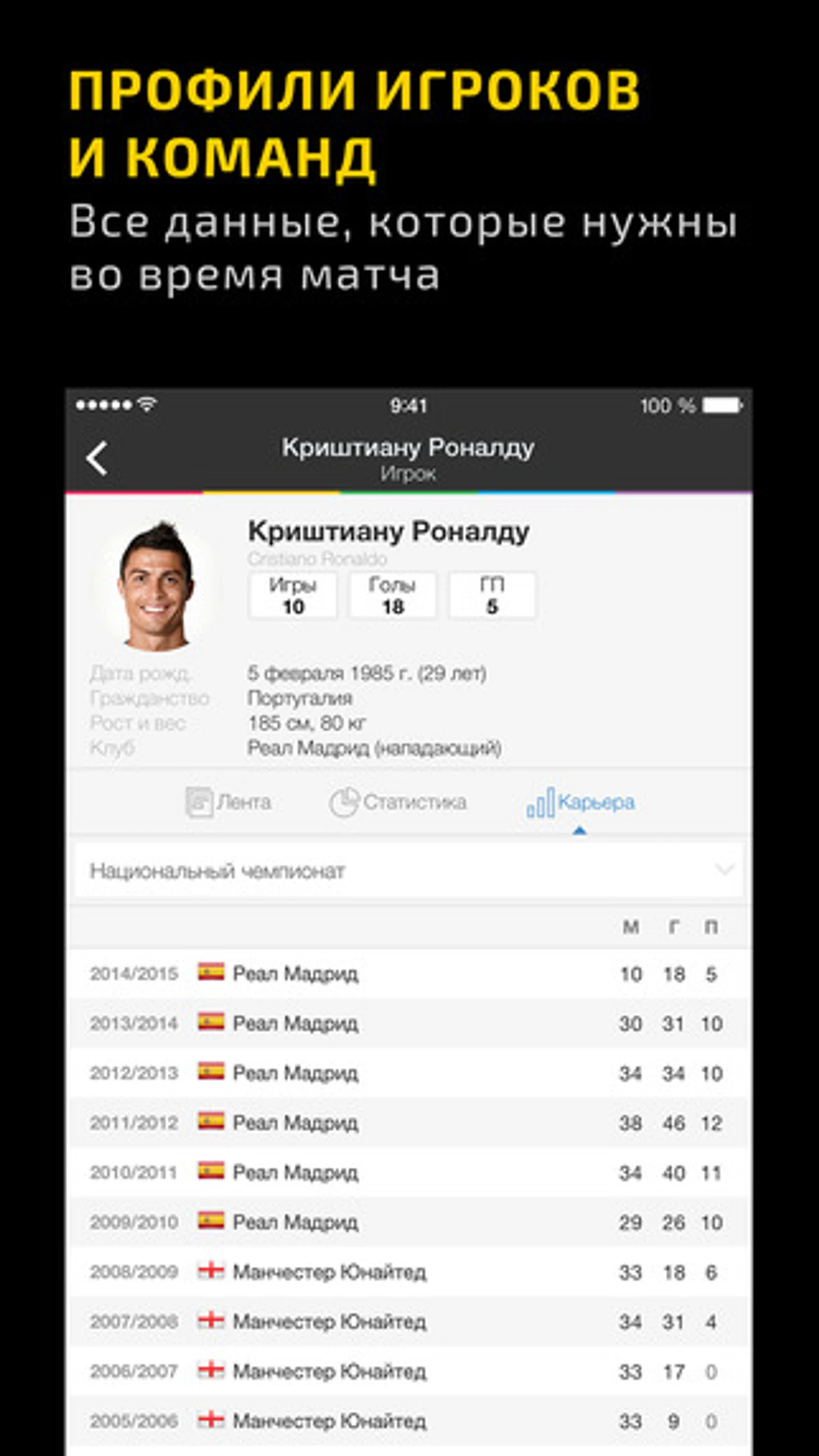 – обновленная страница с подробной статистикой матча (удары, угловые, владение мячом и т.д.)