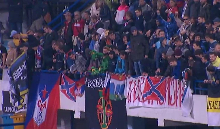 На матче Черногория – Россия были вывешены флаги Новороссии