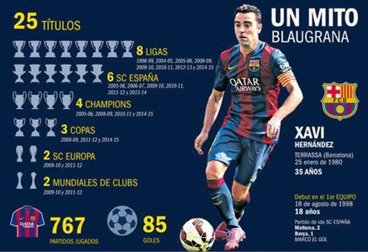 Полузащитник «Барселоны» Хави, приняв участие в финальном матче Лиги чемпионов против «Ювентуса» (3:1), выиграл 25-й трофей в составе каталонского клуба.