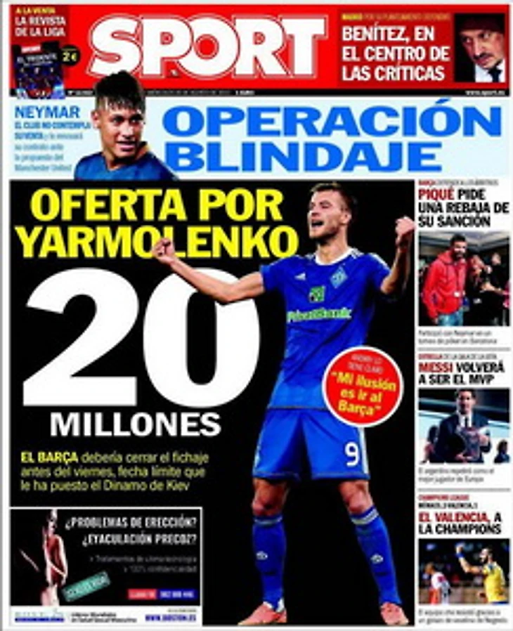По данным газеты, «Барселона» планирует заплатить за Ярмоленко 20 миллионов тремя траншами: 5 миллионов евро – в августе, 5 миллионов – в январе, когда сине-гранатовым можно будет регистрировать новых футболистов по истечении запрета на трансферы, и 10 миллионов – по окончании сезона.