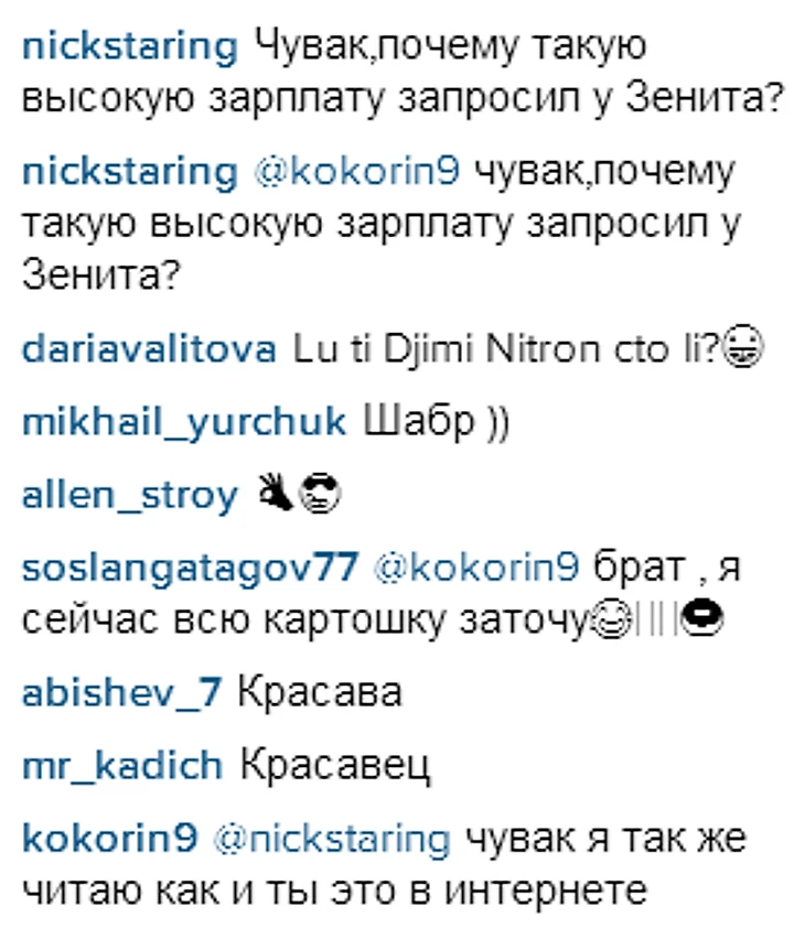 В комментариях к одной из фотографий футболиста в социальной сети инстаграм ему задали вопрос: «Почему такую высокую зарплату запросил у «Зенита»?»