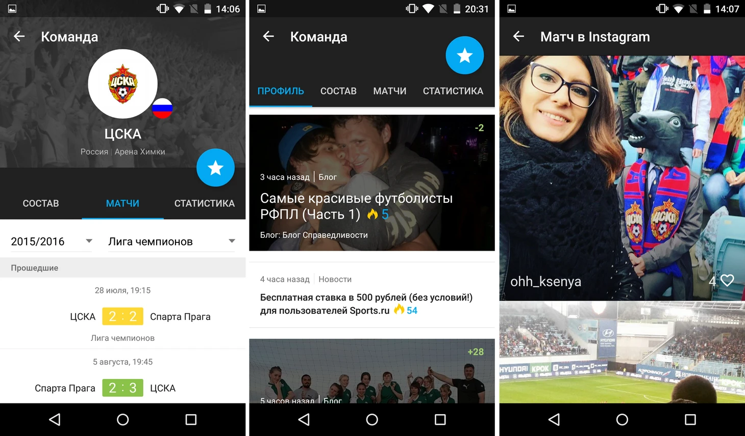 – Фотолента по каждому матчу, агрегированная из Instagram и Foursquare