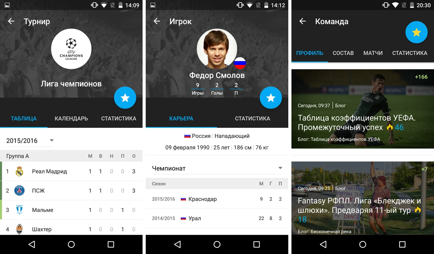 – Новости и материалы по всем командам, турнирам и футболистам;