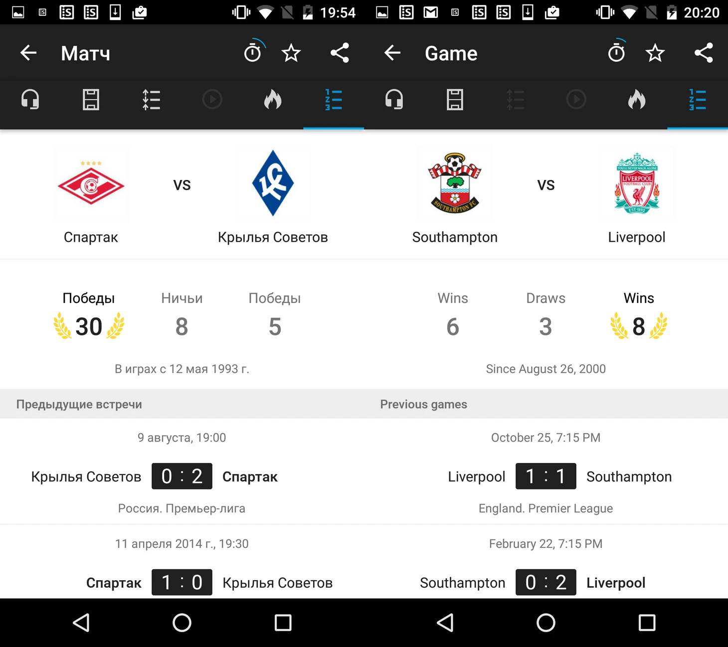 Так же стала доступна head-to-head статистика по каждой отдельно взятой игре: