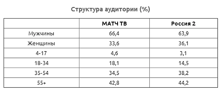 Сайт Sostav.ru сравнил аудиторию нового спортивного телеканала «Матч ТВ» по сравнению с аудиторией «России 2».