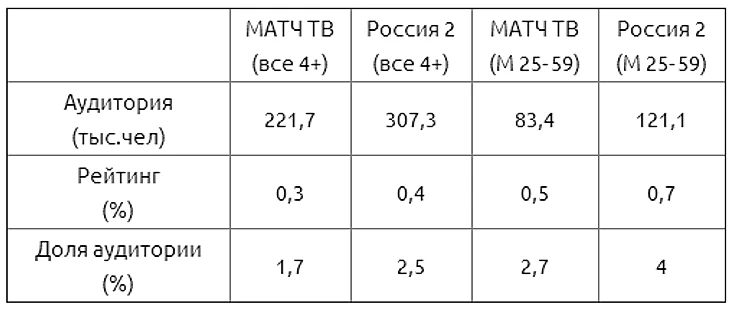 «Матч ТВ» не показал роста аудитории по сравнению с «Россией 2»