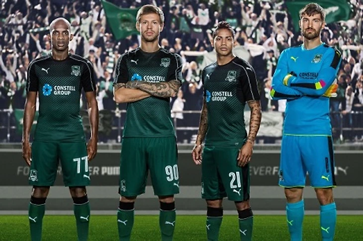 Форма «Краснодара» в новом сезоне представлена в традиционной для клуба расцветке. Футболка, шорты и гетры выполнены в новом градиентном сочетании традиционной черно-зеленой цветовой гаммы.