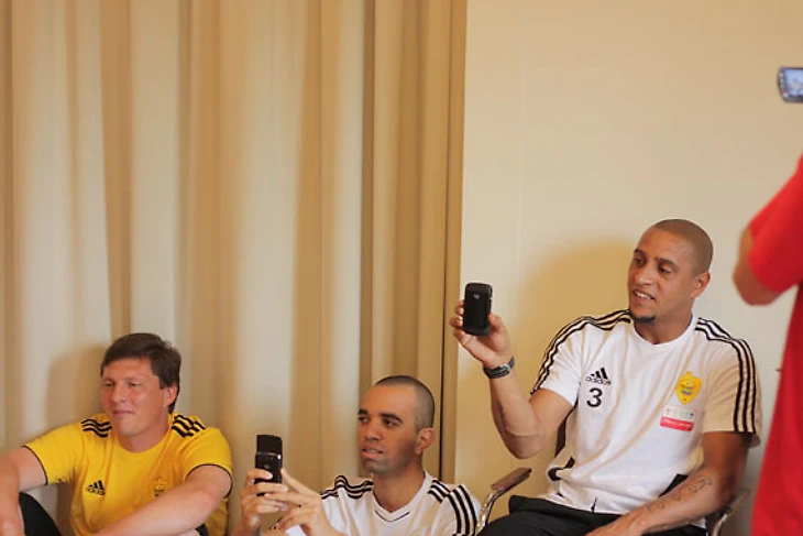 Сидящий рядом с ним Роберто Карлос твердит про боли в ноге, но его никто не слушает.