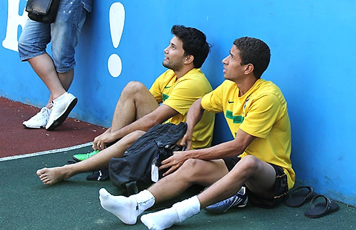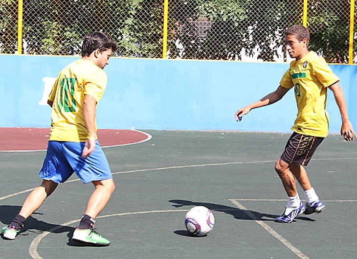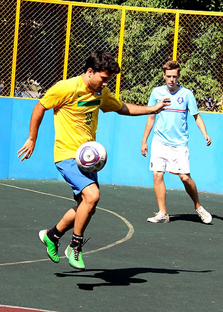 Редакция Sports.ru и ее гости высыпают на улицу. Договариваемся на 20-минутный матч четыре на четыре с хоккейными воротами. На Майконе и Салире ядовито-желтые футболки сборной Бразилии. Парни с первых секунд принимаются творить красоту: финты, удары из любых положений, пятая скорость. Все выглядит очень ярко, но… Ничего особенного в их действиях нет даже на фоне нашего балагана – непрофессиональных игроков, у которых есть проблемы со спиной, весом, техникой и игровым мышлением.