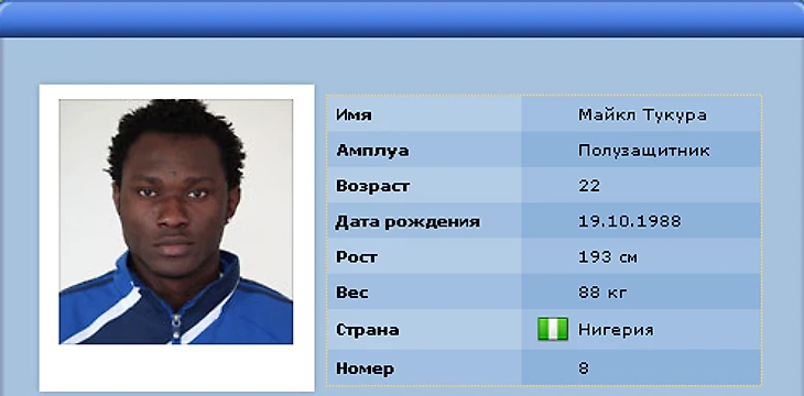 0.28 Давайте что ли познакомимся с новичком «Рубина» Майклом Тукура и взглянем на его анкету на сайте «Венспилса»: