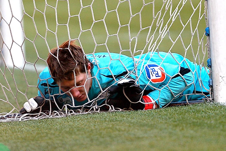 Год начинался для Чепчугова зажигательно – несколько могучих сейвов и в целом уверенная игра в «Лужниках» с «Реалом» настраивали на оптимизм. Однако прошло уже два с половиной месяца, а на счету Сергея нет ни одного сухого матча или хотя бы матча без грубой ошибки. Возьмем гол Павлюченко, положивший начало поражению от «Локо» – удар несильный и довольно предсказуемый, но Чепчугов неудачно занимает позицию и пропускает мяч. Игра с «Динамо»: Семшов бьет головой метров с тринадцати, Чепчугов валится в угол и ЦСКА теряет два очка. По сравнению с осенними кошмарами, когда появления Чепчугова оборачивались то четырьмя, то тремя пропущенными мячами, то вовсе удалением, Сергей научился не расклеиваться после пропущенных голов, но, как ни крути, после стольких нелепо пропущенных голов в болельщиков ЦСКА вселяет оптимизм только одно – скорое возвращение Игоря Акинфеева.