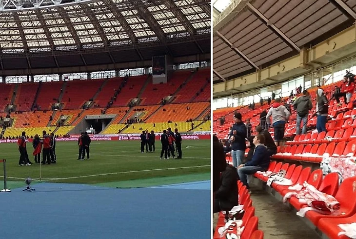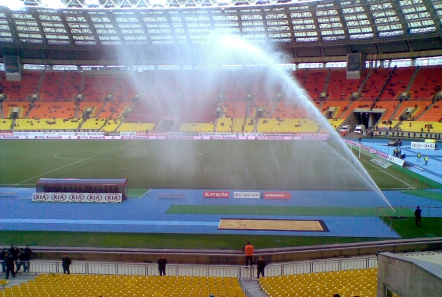 17.05 Поле «Лужников» и трибуна B прямо сейчас.