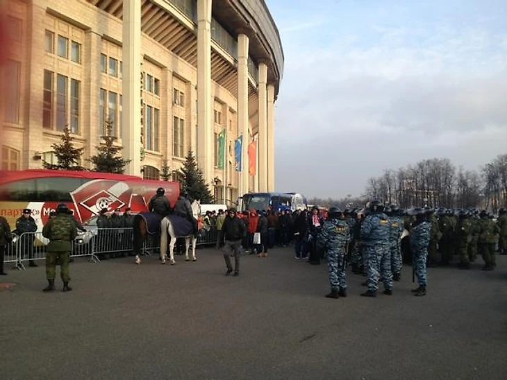 Болельщики «Спартака» ожидаемо захотели поговорить с футболистами после матча, но автобус красно-белых оцепил ОМОН. «Дикань вышел, извинился за всех. Остальные боятся выходить», – сообщает твиттер «Фратрии». Люди после этого еще долго не расходятся.