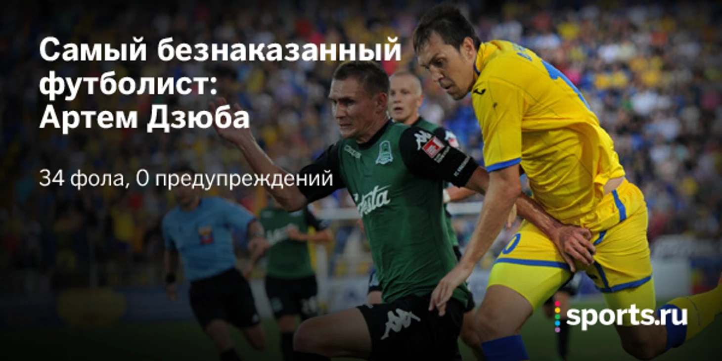Самый безнаказанный: Артем Дзюба – 34 фола, 0 предупреждений