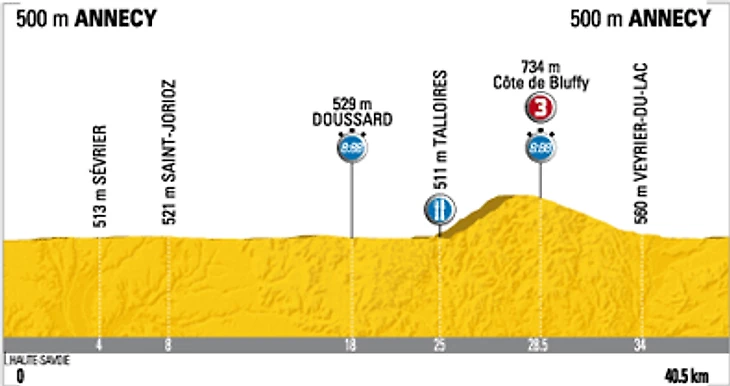 13.34 Маршрут трассы проходит вокруг одноименного озера, расположенного посреди французских Альп. Четыре контрольных отсечки будут на отрезках в 18, 25, 28,5 и 37 км. На дистанции нас ждет небольшая гора третьей категории сложности с градиентом в 6 градусов и длиной в 3,7 км.
