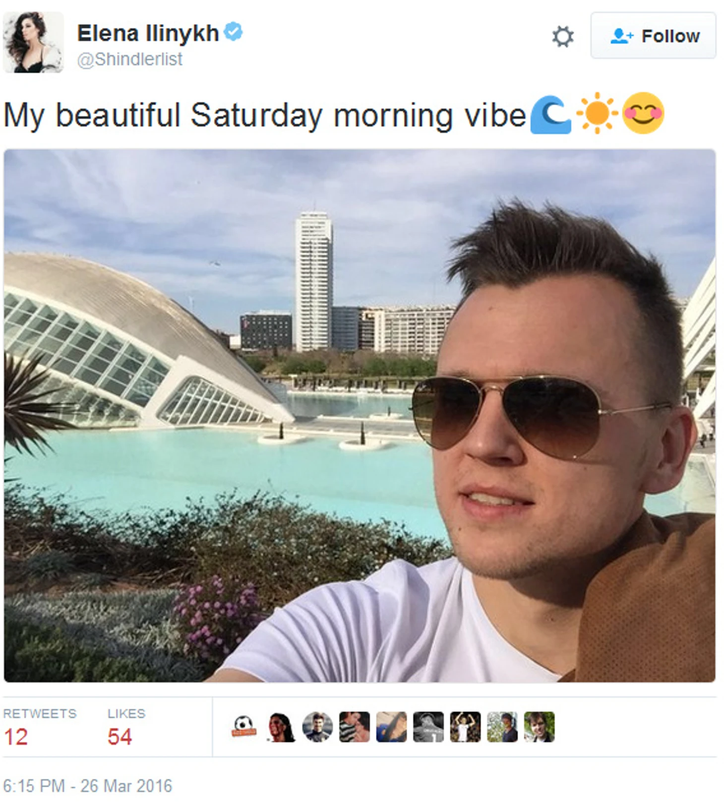 Российская фигуристка Елена Ильиных, выступающая в танцах на льду с Русланом Жиганшиным, опубликовала на своей странице в твиттере фотографию полузащитника «Валенсии» Дениса Черышева.