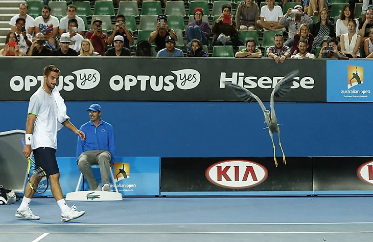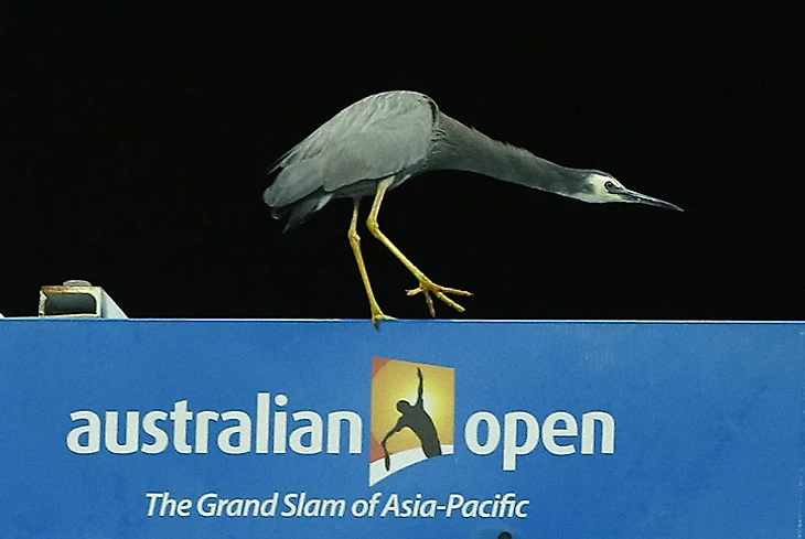 В этому году на Australian Open пожаловала цапля. Правда, матч между Виктором Троицки и Даниэлем Муньосом де ла Навой надолго прерывать не пришлось – птица улетела сразу после того, как судья на вышке огласил окончание перерыва между геймами.