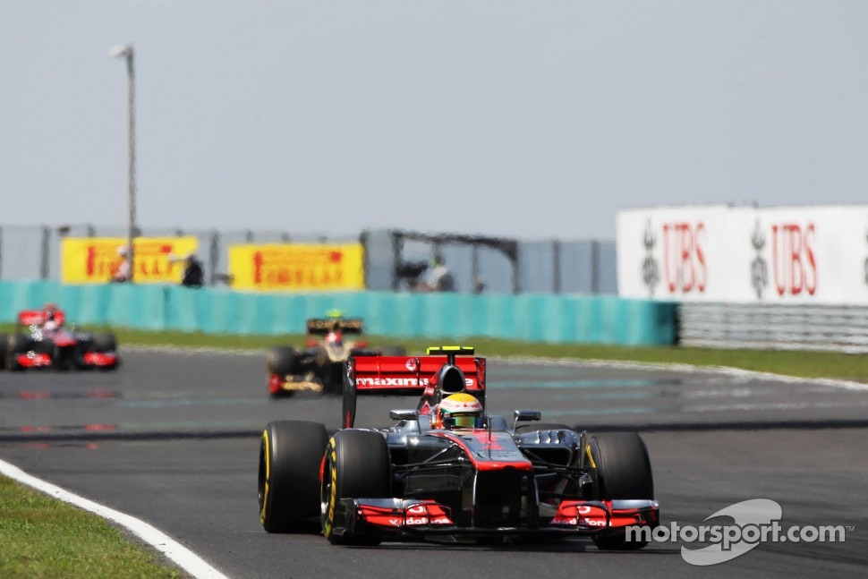 Особенно горячился в первых поворотах Сэб, затерзавший Грожана, чем облегчил жизнь Хэмилтону. Обогнать недофранцуза у Феттеля не вышло, зато вышло пропустить достающего его второй гран-при подряд Баттона. Следом Алонсо прошел Кими, отпраздновав тем самым свой тридцать первый день рождения.