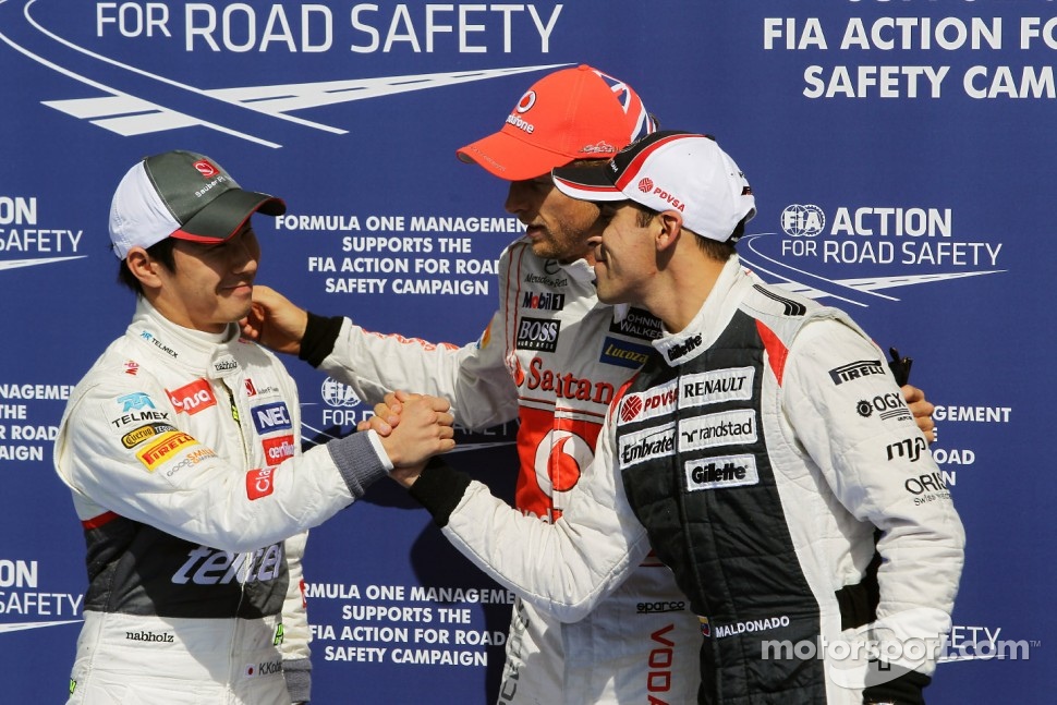 Третий сегмент подарил весьма специфические результаты, придав стартовой решетке местами неожиданный вид. Обычно укатывающие в квалах напарников Хэмилтон и Грожан на сей раз сумели опередить только одинокого ди Ресту. Чуть выше очутился вместе со своим штрафом в пять позиций Уэббер. Мексиканский плакса праздновал победу над любимой «Феррари», фаршированной испанским лидером, и едва не дотянулся до четвертого места Кими (14 тысячных). Только трое пилотов сумели выйти из 1.48, и если с Баттоном в этот раз бороться было бессмысленно, британец взял-таки первый за черти сколько лет поул, вернувшись во времена волшебного «Брауна» (неизвестно, что там себе Дженс натер гидрокостюмом Джессики, но это походу помогло), то второе место Кобаяси и третье Мальдонатора (22 тысячные разницы) были совершенно необязательной программой.