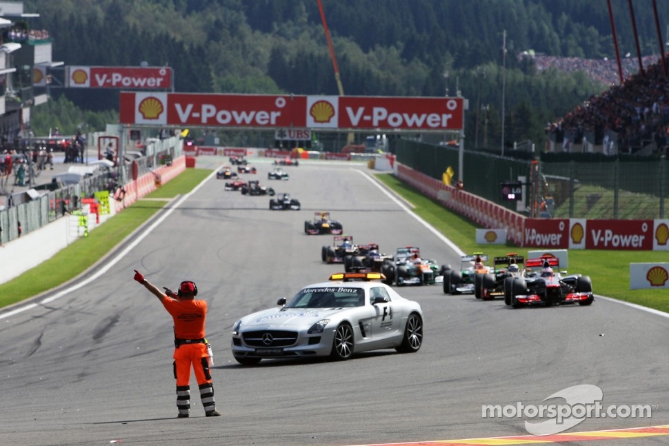 На этом стартовое представление было закончено. На трассу оперативно прискакал желанный «Мерседесами» сейфти-кар, первый поворот принялись усиленно очищать от обломков, а режиссеры пустились рассматривать произошедшее во всех ракурсах.