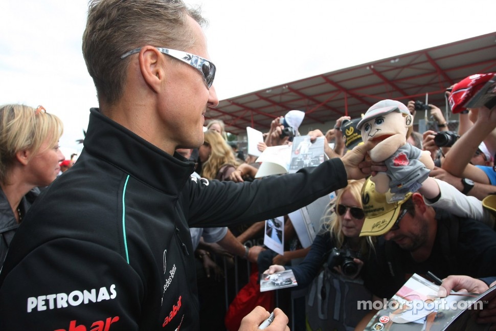Первый сегмент был раскрашен двумя событиями. Первое – непосредственно Шумахер, празднующий 300-й Гран-при, что хоть и дофига, но все равно прилично меньше чем у незадачливого Рубинью.