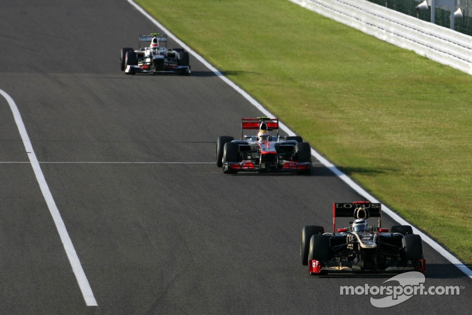 Завершающий аккорд японского Гран-при давал Михаэль. Шумми добрался до Риккардо, то есть до первого места, дающего очки, и устроил настоящую дуэль. Пока трибуны переживали за Кобаяси, пытающегося удрать от Баттона, Шумми опередил кенгуратора, но практически сразу пустил обратно, чего нам, к сожалению, так и не показали.