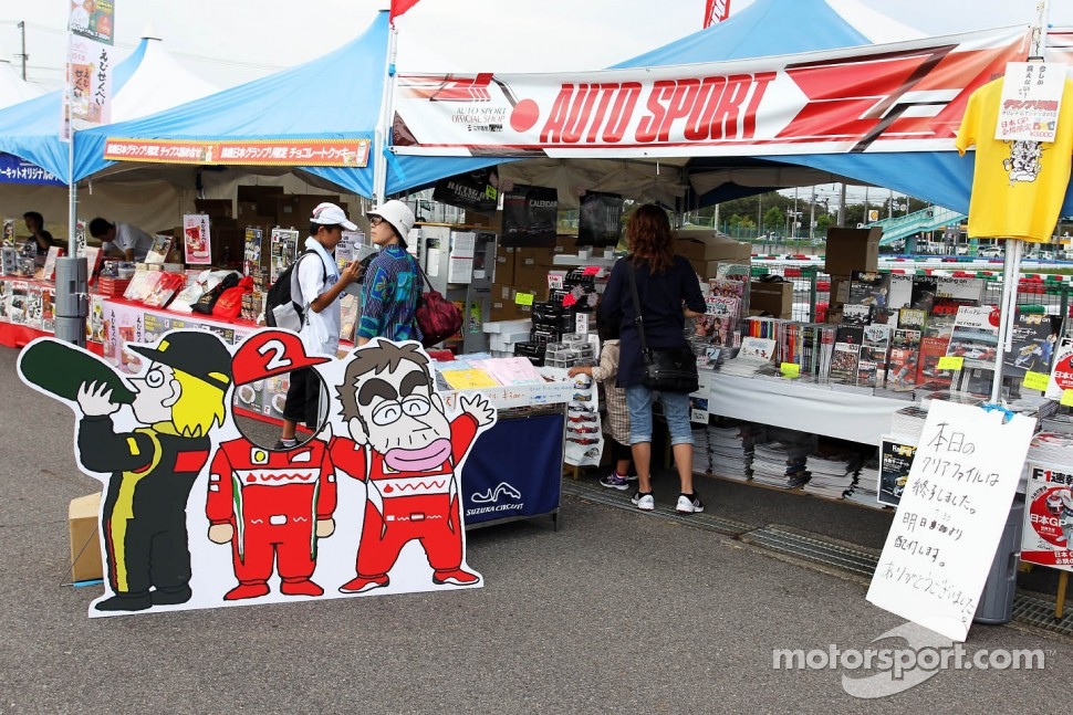 Вообще Кобаяси был повсюду, его колоритная физиономия улыбалась с футболок, кепок, флагов и рюкзаков. На стартовой решетке Камуи буквально не давали проходу официальные лица, жаждущие потрепать местного героя за руку и сфотографироваться. Вокруг носился с микрофоном Дэвид Култхард, пытавшийся совершить невозможное и взять-таки интервью у непривычно востребованного японца. Вспомнить о том, что мы находимся на Гран-при, а не на автограф-сессии Кобаяси помогли ворвавшийся в трансляцию «российский голос» и гимн Японии.