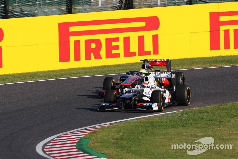 Поставить точку в активном фрагменте гонки было суждено Пересу. Мексиканец после стопов вновь очутился позади Хэмилтона и то ли попробовал пройти «глобального» в том же месте, где и в первый раз, то ли Льюис слишком замедлился, но так или иначе Серхио выскочил на внешнюю траекторию, которая, как и вся гонка, закончилась для него разворотом за пределами трассы.