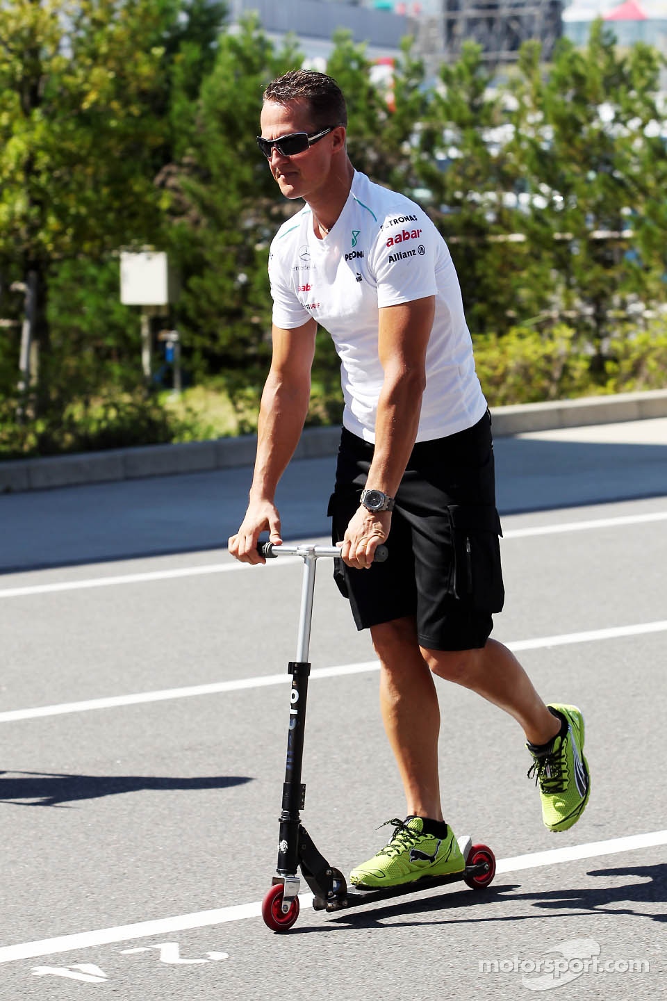 Михаэль Шумахер (о первых практиках на «Сузуке»): «Сегодня мы провели две достаточно насыщенные сессии свободных заездов, в которых мы много работали над болидами, а я вылетел с трассы».