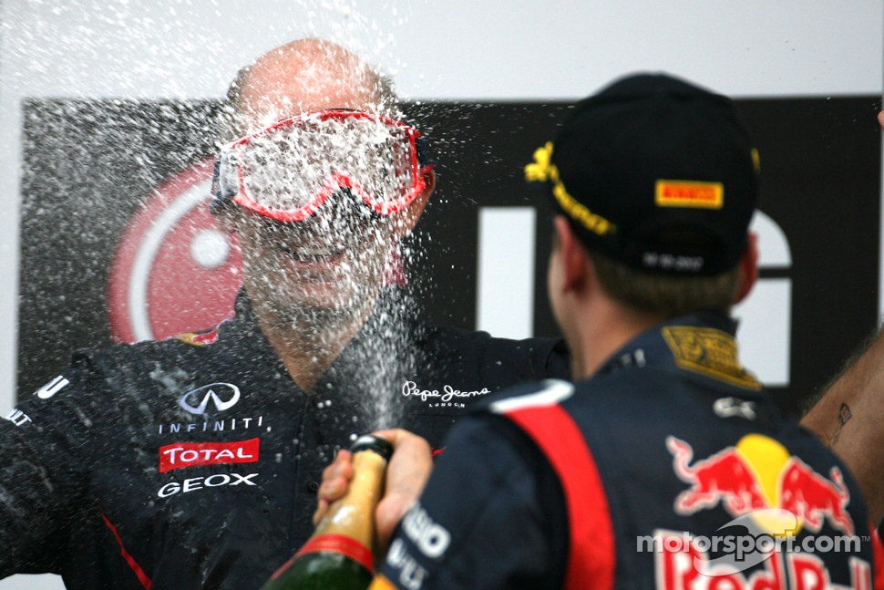 Эдриан Ньюи побеждает даже шампанское. Смешное решение гениального человека. Фото: motorsport.com