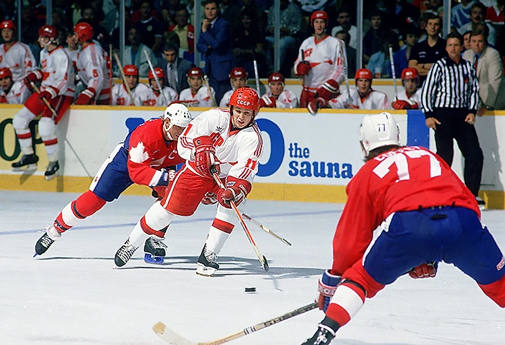Надо сказать, что и с точки зрения стиля команды тогда приблизились друг к другу. Такие себе две «Красные машины». Если сейчас Олег Знарок говорит, что его команда играет в «красивый, российский хоккей», бедами которого якобы являются лишние передачи и стремление «завести шайбу в ворота», то к команде Виктора Тихонова это точно не относилось. Лучший хоккей в исполнении сборной СССР отнюдь не был горизонтальным, вот и на КК-87 она была нацелена на ворота никак не хуже канадцев.