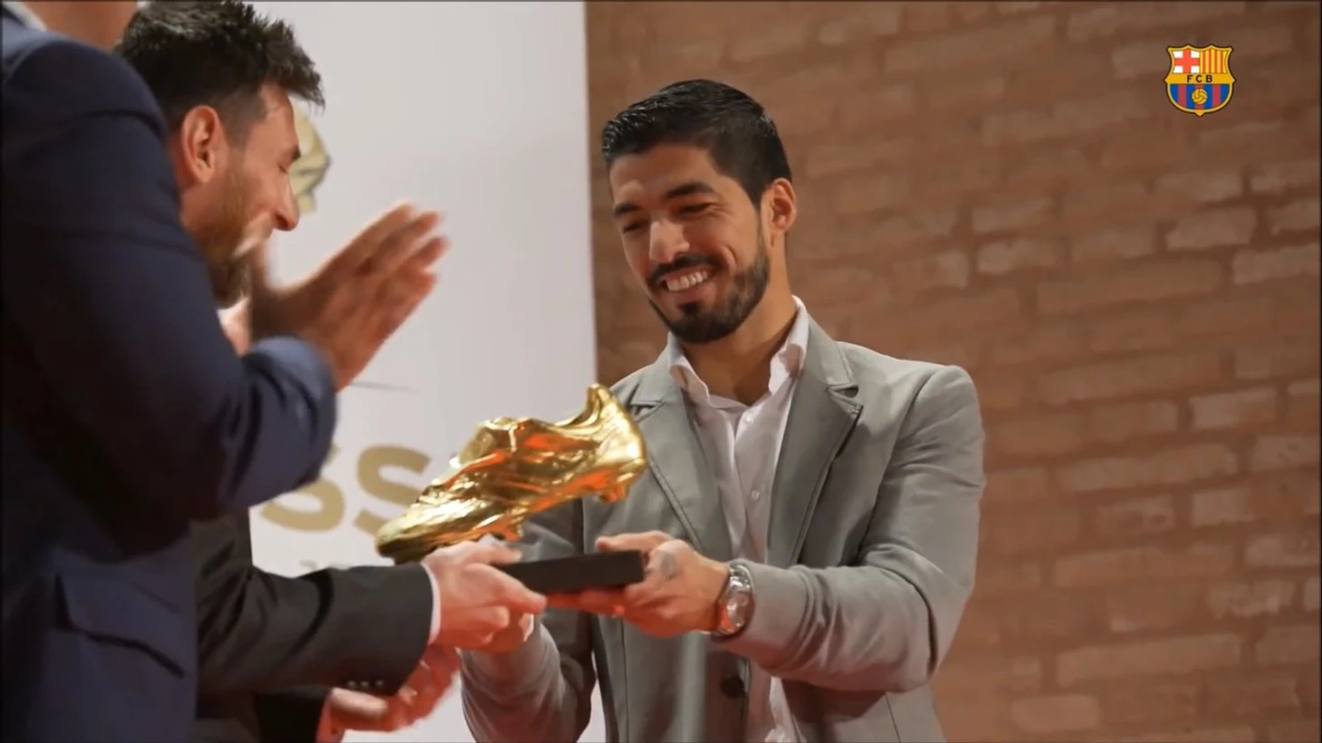 Луис Суарес вручает четвертую "Золотую бутсу" своему именитому одноклубнику. ВИДЕО
