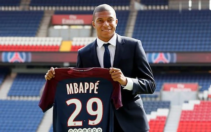9. Килиан Мбапе, 2017 год, Монако-ПСЖ. Сумма трансфера 180 000 000 (2 место),143198,09 унций золота