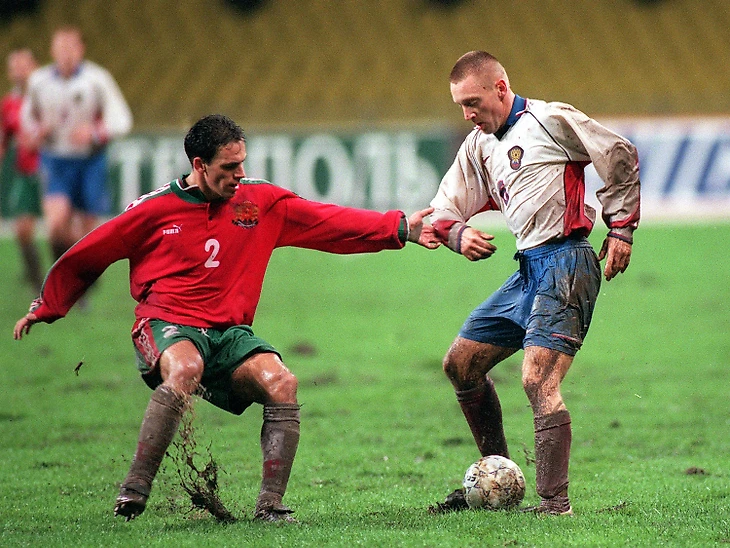 Начнем, наверное, с главной команды страны. Что тут скажешь. Тиша оказался в сборной не в самое лучшее время. Лучшие матчи пришлись на «романцевский» период отбора к Евро-2000. Тихонов хоть и не забивал, но всегда проделывал огромный объём работы на поле. Но тогда команде не повезло, и многие из того поколения больше в сборной не появлялись. Не стал исключением и Андрей, который в 2000-ом угодил в какой-то непонятный игровой кризис. Так уж получилось, что в сборной он смог заиграть благодаря тому же человеку, который открыл его и для «Спартака».