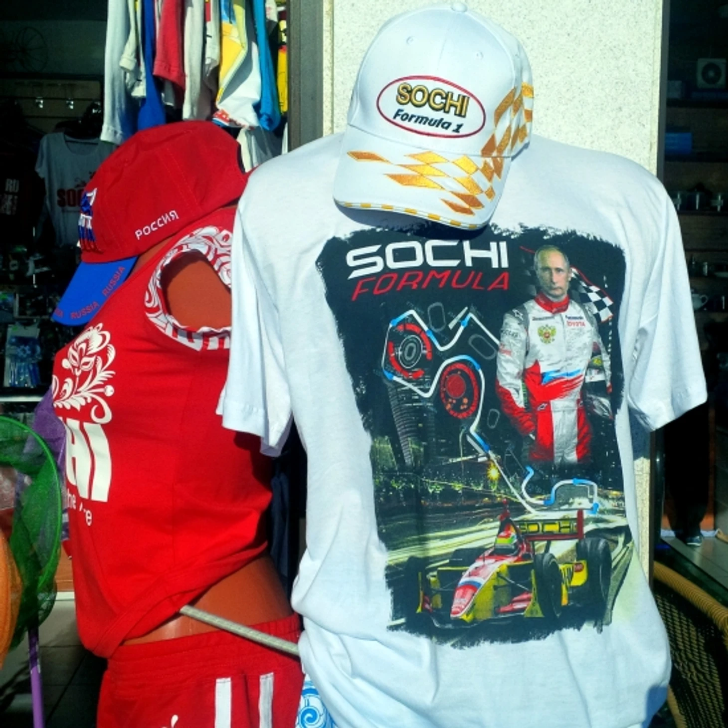Главный хит местных лавок с товарами на все случаи жизни – футболки с изображением президента. Путин на коне, Путин в комбинезоне пилота «Формулы-1», Путин, Путин, Путин. Многие из них сопровождают подписи в духе «Своих не бросаем» или «Самый вежливый человек», в паре случаев буквы складываются в обескураживающую реплику «Обидевший Россию больше трех дней не проживет».