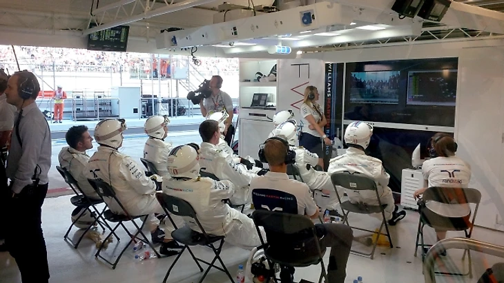 Ситуацию спасает команда «Уильямс Мартини Рейсинг», пригласившая досматривать гонку в свой гараж. Первым делом надеваю наушники – непременный атрибут причастности к происходящему. Накануне Валттери Боттас – финский парень, росший на музыке Offspring – был хорош в квалификации, и теперь за десять кругов до финиша претендует на место на подиуме. В наушниках раздаются подсказки инженеров, через несколько секунд Боттас пролетает мимо гаража, вся команда сосредоточенно смотрит на мониторы.