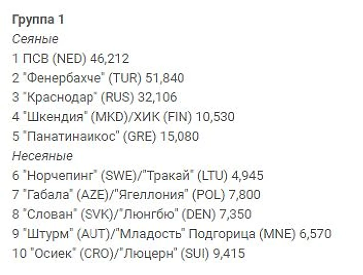 Именно поэтому «Краснодару» может попасться не один из пяти, а один из 10 несеянных клубов.