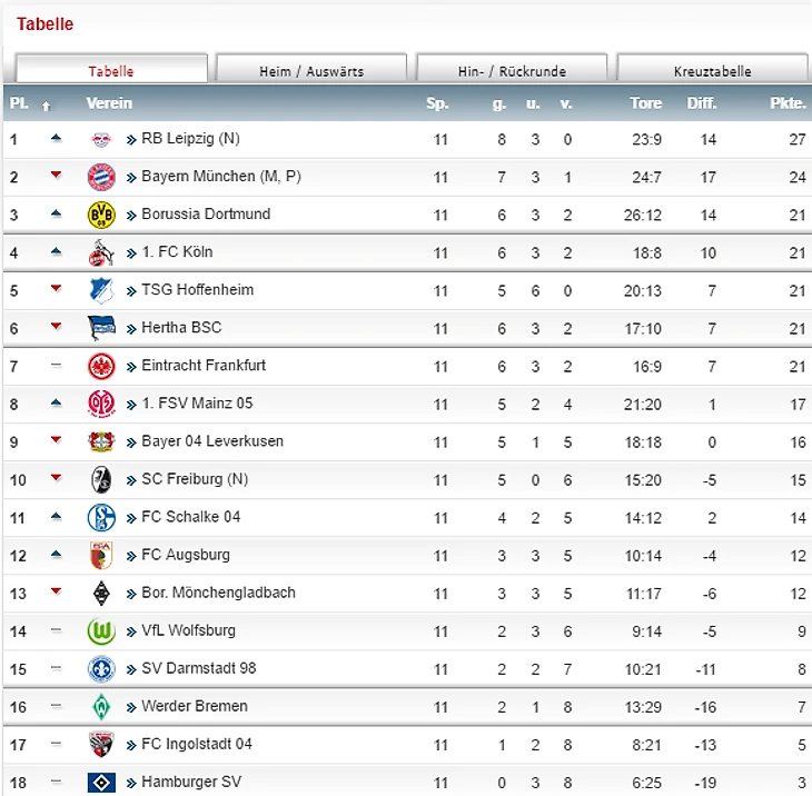 После 11-го тура в Бундеслиге совершенно уникальная ситуация: сразу пять команд делят места с третьего по седьмое. И не забудем про лидеров из Лейпцига. Пожалуйста, Германия, продолжай в том же духе!
