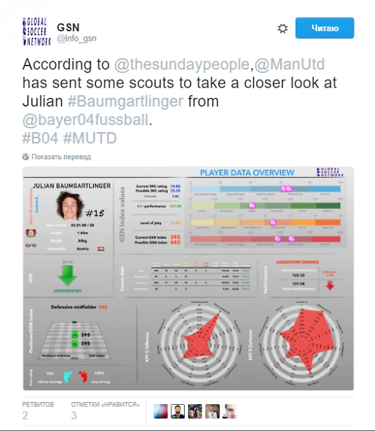 Если верить слухам, то на игре «Байер» - «РБ» присутствовали скауты «МЮ», просматривавшие полузащитника «аспиринщиков» Юлиана Баумгартлингера. Именно в этом матче австриец сподобился на автогол. Парень совсем не хочет в Англию.