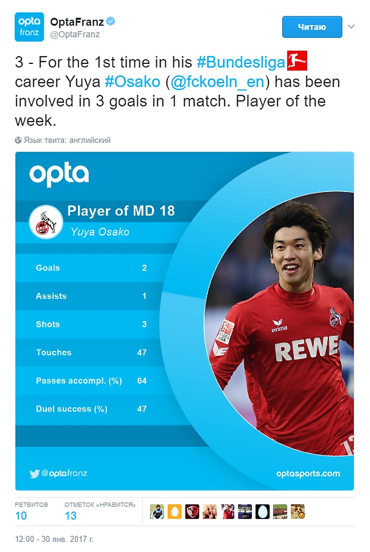 по версии Opta