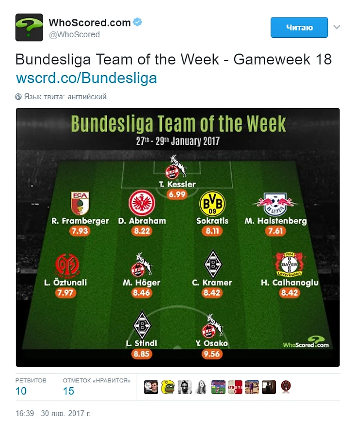 - по версии WhoScored