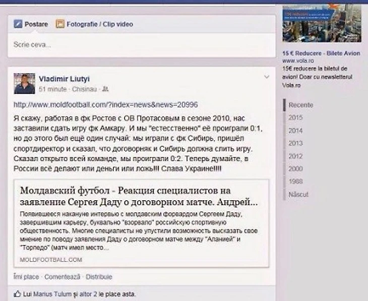 «Когда мы работали в «Ростове» с Протасовым в сезоне 2010 года, нас заставили сдать игру «Амкару». И мы «естественно» ее проиграли 0:1. Но до этого был еще один случай: мы играли с «Сибирью», пришел спортдиректор и сказал, что договорняк и «Сибирь» должна слить игру. Сказал открыто всей команде, мы проиграли 0:2. Теперь думайте, в России все делают или деньги, или ложь!!! Слава Украине!!!».
