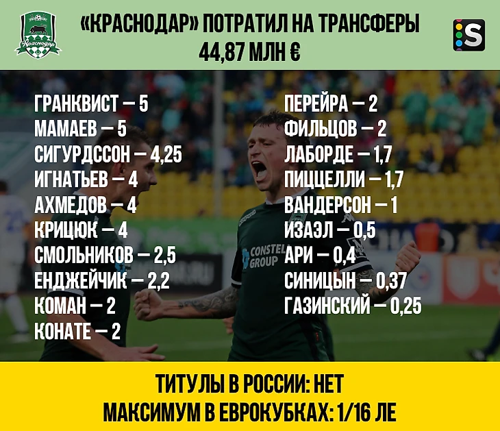 3. Почему в перечень вообще не включен "Ростов"? У него, если что, есть титул - Кубок России. + "серебро" чемпионата. Разве неинтересно, во сколько им обошлись эти достижения? Все лучше, чем за фнл-щиками из "Динамо" их "успехи" подсчитывать.